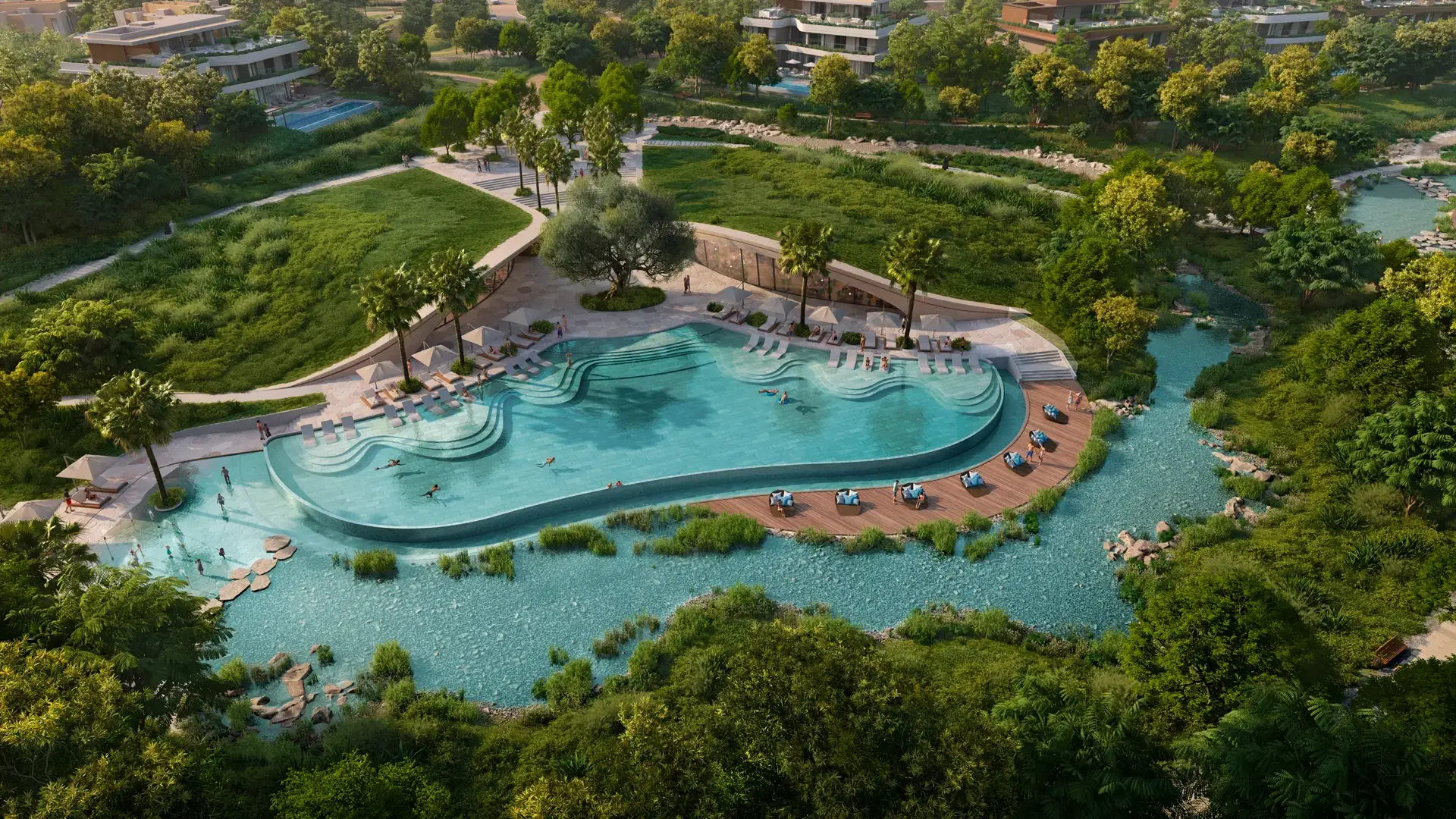 Introducing The Wilds in Dubai. Homes interwoven with natural greenery and outdoor spaces that nourish young minds. Own a 3 to 5-bed villa and spend your days adventuring with the little ones, finding balance in the great outdoors and making new connections at The Nest Signature Pavilion.